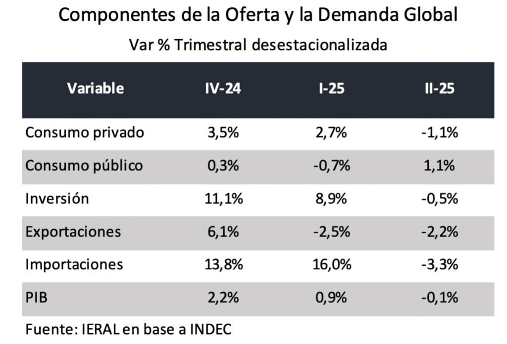 En realidad, actividad y empleo habían entrado en terreno negativo en la medición desestacionalizada incluso antes de las turbulencias de julio, como lo muestran los datos de cuentas nacionales: en el segundo trimestre, las variaciones del PIB (- 0,1), del consumo privado (- 1,1 %) y de la inversión (-0,5 %) fueron negativas respecto del primero. Estas tendencias, que se habrán de profundizar en el tercer trimestre, tienen que ver con una combinación de variables ya analizadas en anteriores artículos.