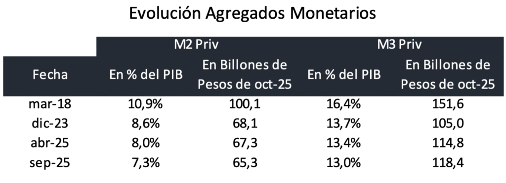 En la medida en que las expectativas de inflación sigan contenidas, y que el nivel de actividad comience a salir de la recesión técnica del segundo y tercer trimestre de 2025, entonces la demanda de dinero tendría altas chances de comenzar a recuperarse, facilitando la tarea del Banco Central de comenzar a comprar dólares en el mercado de cambios sin necesitad de esterilizar los pesos ofrecidos a cambio.