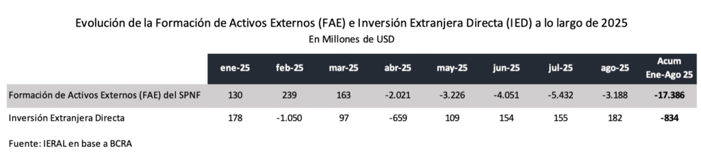 A mediados de año, antes del arranque de la volatilidad en la que derivó el rescate de las LEFI, la cuestión externa ya ocupaba espacio creciente en los informes de IERAL. En un momento en el que el discurso oficial seguía insistiendo en que “no necesitamos más reservas”, el cuadro de situación se hacía cada vez más complejo, ya que la cuenta corriente del balance de pagos seguía apuntando a un déficit del orden de los 2,0 puntos del PIB, cuando ya las tendencias recesivas se habían instalado, mientras que en la cuenta capital la formación de activos externos por parte de personas físicas ya alcanzaba una cifra anualizada equivalente a los 6,8 puntos del PIB, en un contexto en el que la Inversión Extranjera Directa brillaba por su ausencia.