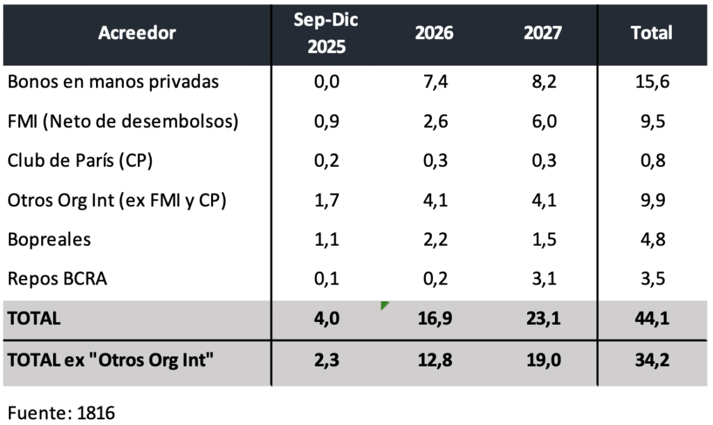 Vencimientos en dólares del Tesoro y BCRA durante el mandato de Milei