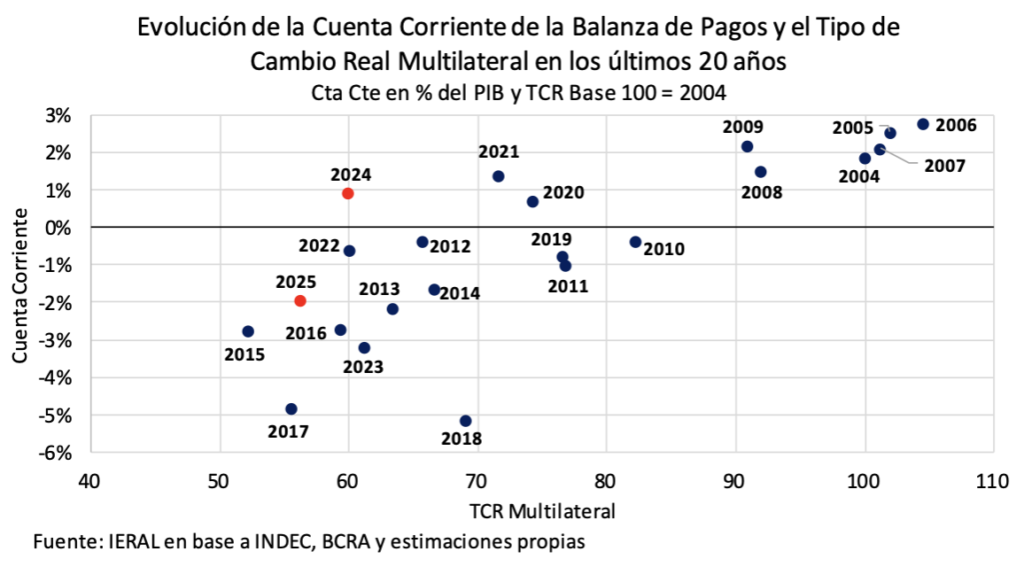 - En cambio, la experiencia de 2023/2024 muestra que la corrección del rojo externo se produjo sin cambios significativos en el nivel del tipo de cambio real multilateral promedio de cada año.
