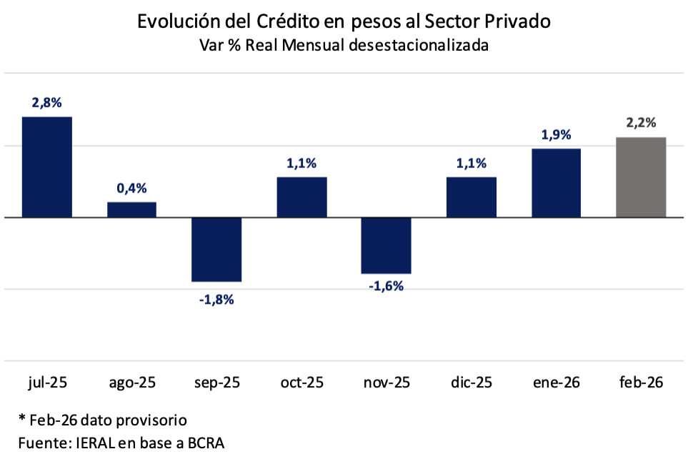 Si bien la variación del mes a mes del crédito al sector privado volvió a terreno positivo, actualmente en torno al 2,0 % en términos reales, estos guarismos no comparan con la experiencia del segundo semestre de 2024, cuanto esta variable crecía a un ritmo de 7,0 % mensual acumulativo.